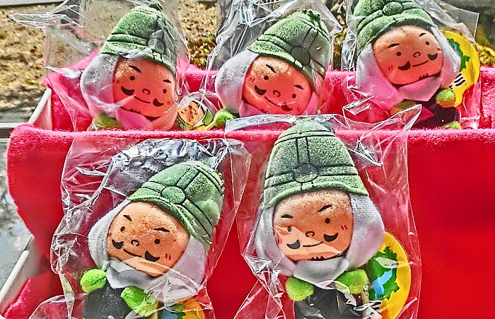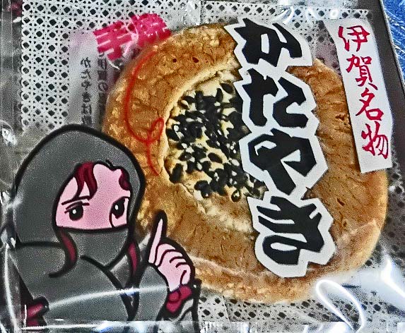 例えば、伊賀名物の「かたやき」(下記写真)のパッケージに描かれている、お色気満点の「くのいち」のイラストを目にした瞬間、「おお~っ、こんなに可愛い忍者にならば、『心の手裏剣』を投げてもらってOK!!