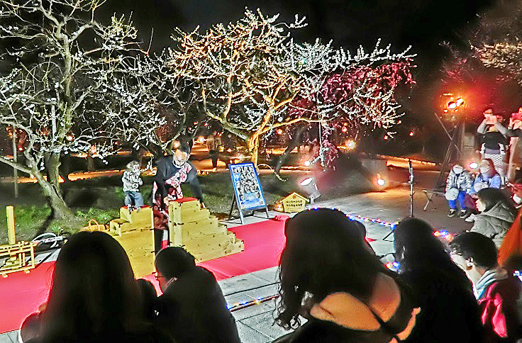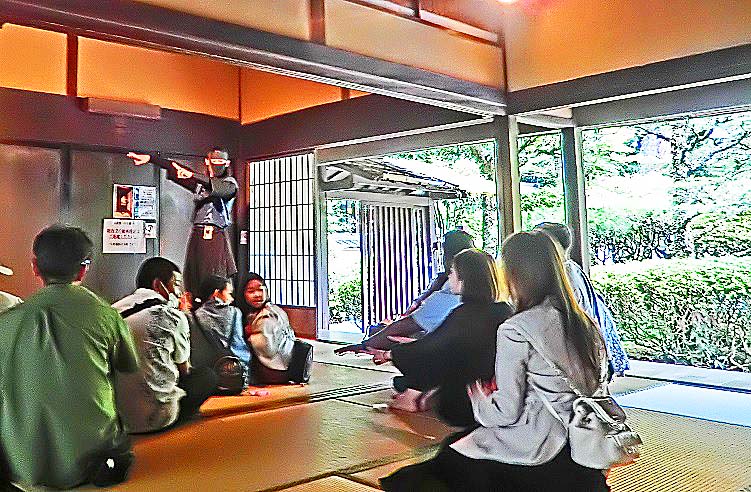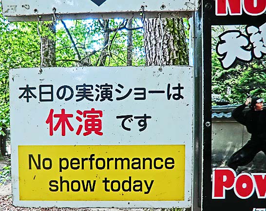 ちょうどタイミング良く、忍者姿のお兄さんが、解説を始めたところですよ。(観客の半数以上は、外国語をしゃべる方々でした・・・「ニンジャ」というのは、マンガ本やアニメーション番組を通じて、世界的に人気が高いそうですからね)