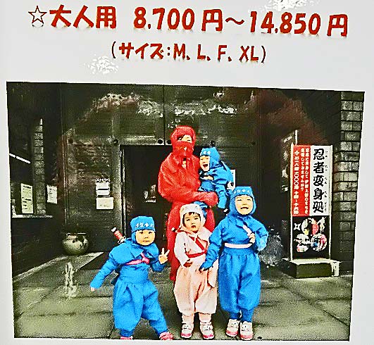 忍者に変装できる衣装も、レンタルできるそうですが・・・こんなに目立つ格好で、この子たちのように大はしゃぎしていたら、「お前、忍者だろ!?」と、バレバレすぎますよねぇ(笑)。