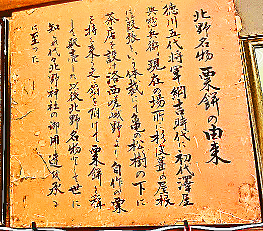 さて、ツアー前半戦の昼の部では、諸事情を考慮したうえで、もみじ苑で有名な「北野天満宮」に、向かうことになりました。そこで私が、天満宮の目の前にある、有名な「粟(あわ)餅」屋さんを訪れる計画を立て、「光の学校」からタクシーに分乗して現地で集合したところ、なんと、観光シーズンの土曜日だというのに、毎月定例の「休業日」!!(涙)