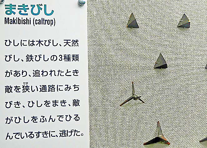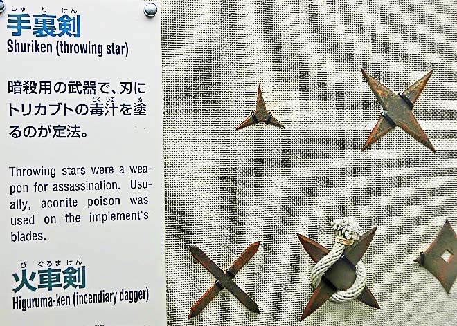 なるほど、そりゃそうですよねぇ・・・いかにも重そうな手裏剣を、いつも何十枚も持ち運んでいたら、移動するには邪魔になるし、「そこの部分、ふくらんでるけど、何が入ってるの?」と、目立ちまくってしまうし・・・(笑)