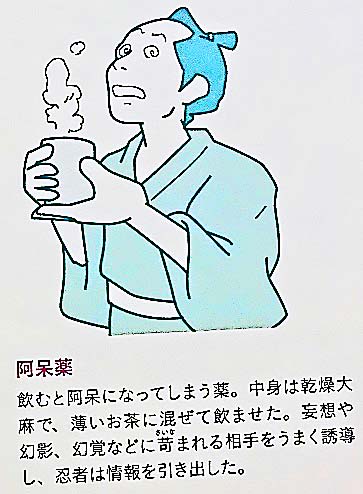 さらに、大麻(麻薬の一種)を乾燥させた「阿呆薬」、つまり、飲むと阿呆(あほう)になってしまう薬を飲ませて、相手を自由自在にコントロールするのも得意技!!