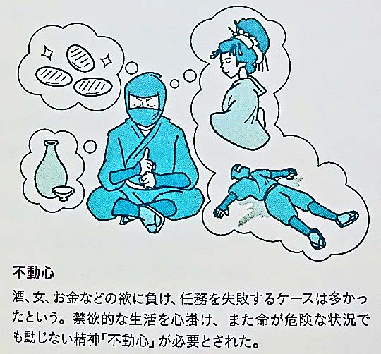 そこで、立派な忍者になるためには、「酒、女、お金」などに惑わされず、禁欲的な生活を送れるだけの「不動心」が、求められたとのこと!!