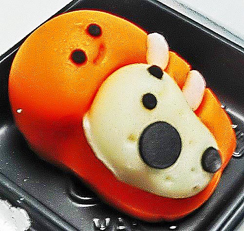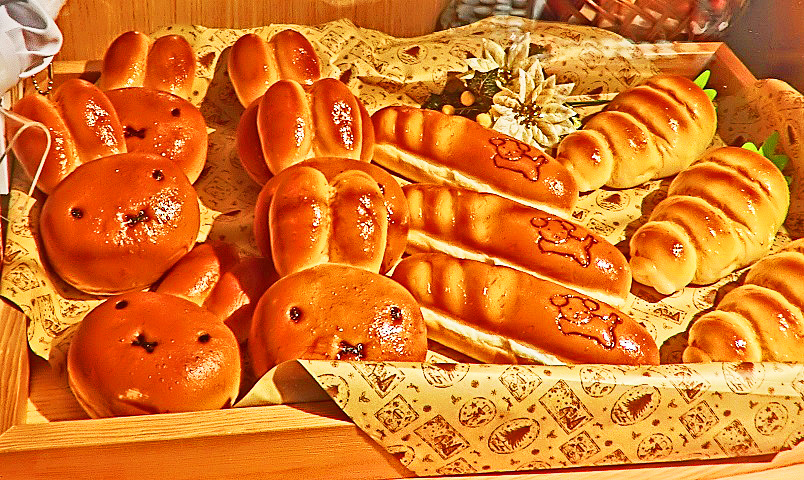 なお、今回のツアーにおいて、最も私の興味を引いたのは、これ・・・四条通りの祇園あたりを歩いていると発見した、可愛らしい「ミッフィー」のパンでした。良~く見ると、写真右端に3個並んでいるパンは、「にんじん」の形をしていることがわかります。