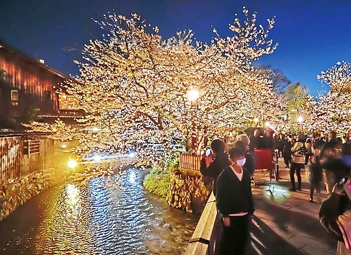歌舞伎を上演する「南座」が、まぶしく輝いていますよ。