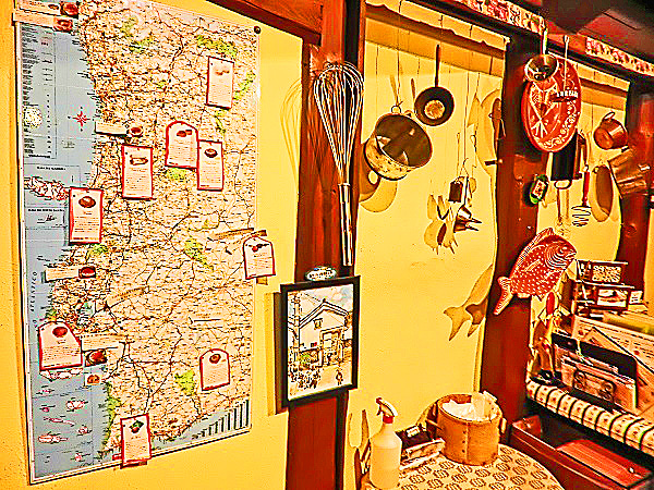 2階に上がると、お菓子とお茶をいただけるカフェになっており、ポルトガルの地図や、郷土色豊かな日用品などが、(お店の装飾も兼ねて)興味深く展示してありますよ。