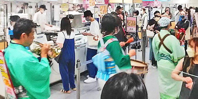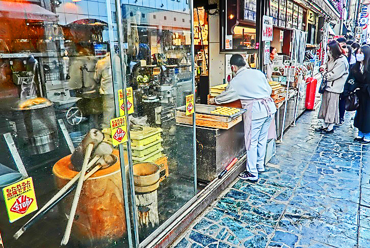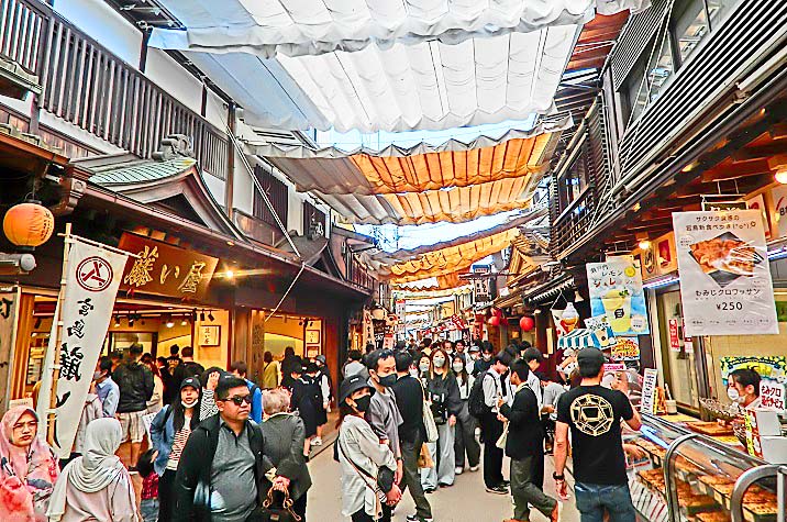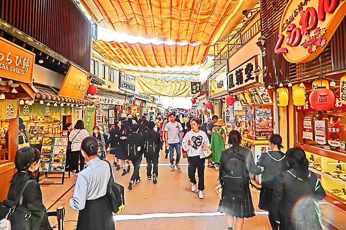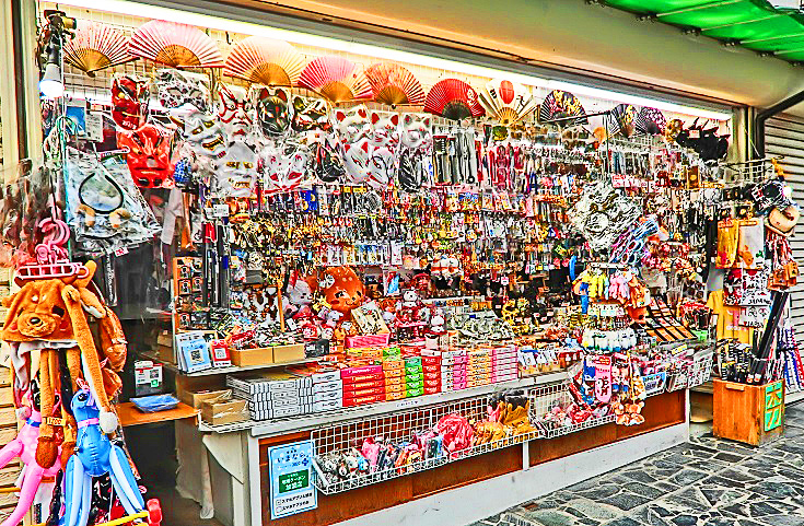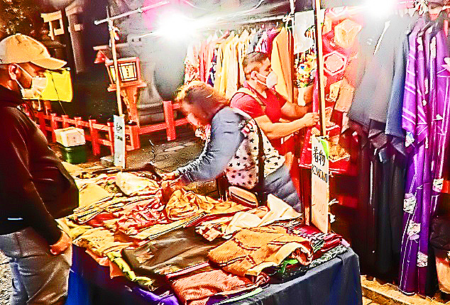 外国人向けの「着物」の露店が、目立つ場所に陣取って、大繁盛していますよ・・・1枚3000円ですから、(着物の値段の知識が無い)外国人観光客の方々にとっては、「ちょっとお土産に」と、気軽に購入できる金額なのでしょうね。日本人向けの着物よりも、派手な色彩の商品が並んでいますから、その方が、外国人の方々にはウケるということ・・・