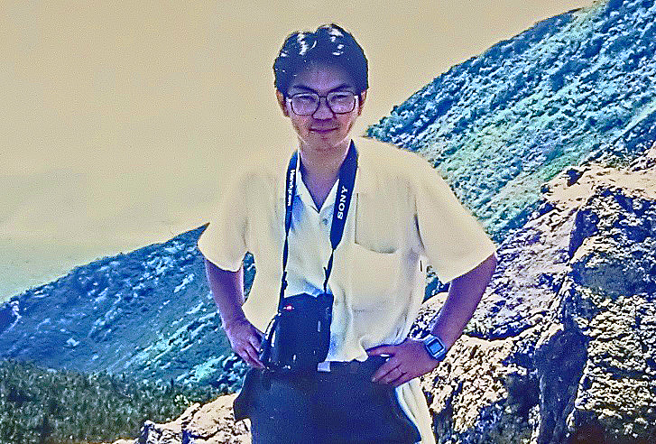 これは、どの山で父が撮影してくれたのか不明ですが・・・ソニーの(当時最先端の)ビデオカメラを、自慢げにぶら下げている様子から、おそらく30代の私でしょうね(笑)。まぶしそうにしていますので、かなり高い山だということだけは、推察できます。(太陽に近いほど、空や周囲の岩肌が、まぶしいんですよ)