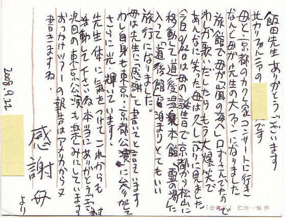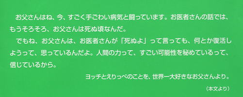 (たとえ病床においても、天性のユーモア感覚は手術前のままなので、代筆者も安心いたしました)