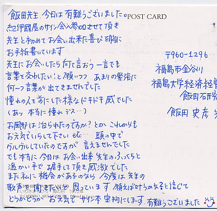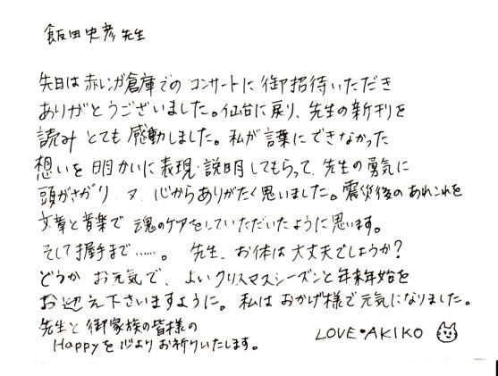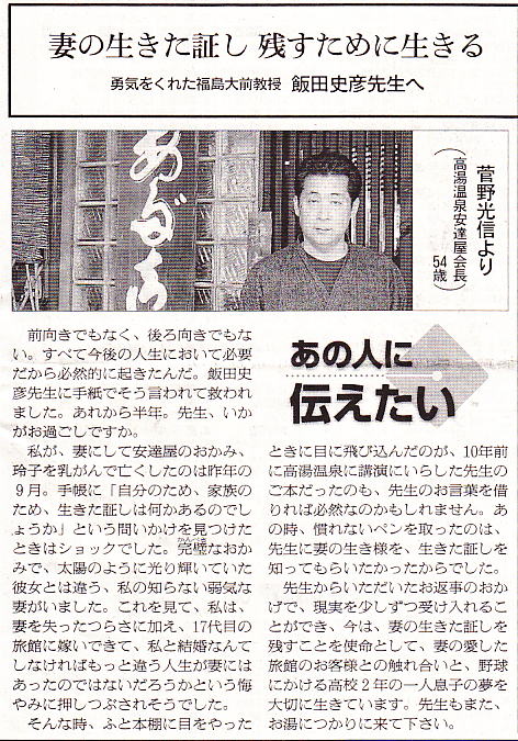 飯田先生の代筆者として、福島大学の皆様の寛大な御心に、心より深く御礼申し上げます。