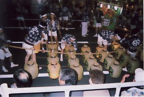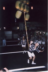 竿灯を腰に乗せる名人芸 竿灯を頭に乗せる名人芸 倒れた竿灯に慌てて火をつける、お気の毒な人々