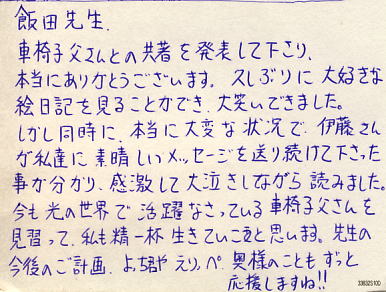 先生自身の手でパソコン操作が可能になりしだい、直々のメッセージがいただけると思います。