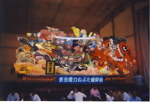 これが、いわゆる「ねぶた」だ! 尾去沢金山で金鉱石を掘る「江戸時代の夫婦の人形」に涙する御一行