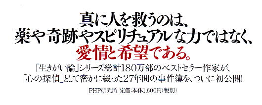 なお、私の魂が体を離れていた時間に体験した、素晴らしい学びの旅の体験談、そして、ついに出遭ってしまった「極限までまぶしい光」との対話は、ここに簡単に書けるほどの内容・分量ではありません。いずれ、著書として詳しく発表させていただきますので、どうぞお楽しみに。(その意味で、今回の私の病気も、私がさらに「生きがい論」を磨き上げるために必要な、「順調な体験」だったのですよ。なにしろ、臨死体験をするためには、実際に、死にかけることが必要ですからね)