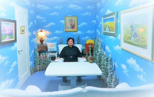 通常、カウンセリング・ルームというのは、お客様がリラックスできるように、シンプルな部屋で、照明を少々暗めにしてあるものなのですが、僕のカウンセリング・ルームは、写真のように光に満ちており、夢いっぱいの童話に出てくるような、明るく楽しい部屋にしてあります。なぜなら、「光の学校」には、生きがいを見失って死にたがっている方々が多数おいでになるため、「さすがに、この雰囲気の中では、暗く落ち込んで死にたがることなど、困難になるであろう」と思われる光景を、意図的に演出しているというわけです(笑)。人間は、無意識のうちに、視覚的知覚内容の影響を大いに受けながら、思考や感情を形成していきますので、「どのような光景が目に見える状態なのか」ということが、きわめて重要なんですよ。