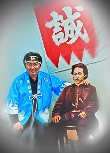 この快挙を祝し、幕末の時代に京都で大活躍した、かの有名な新選組(しんせんぐみ)の土方歳三(ひじかたとしぞう)さんも、新選組の正装を着た私と一緒に、喜んで記念写真に納まってくださいました。