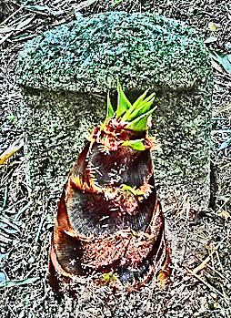 気を良くした私が、ついでに(と申しては失礼ですが)、吉田山から車で10分程度にある「圓光寺」(えんこうじ)を訪れて、美しい竹やぶを散策してみたところ・・・まさに、今、伸び盛りの「タケノコ」たちを、数え切れないほど発見!!