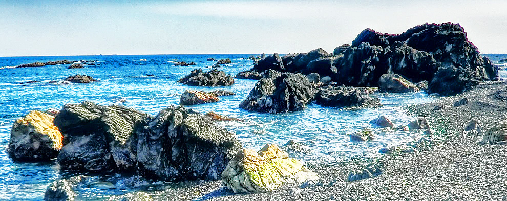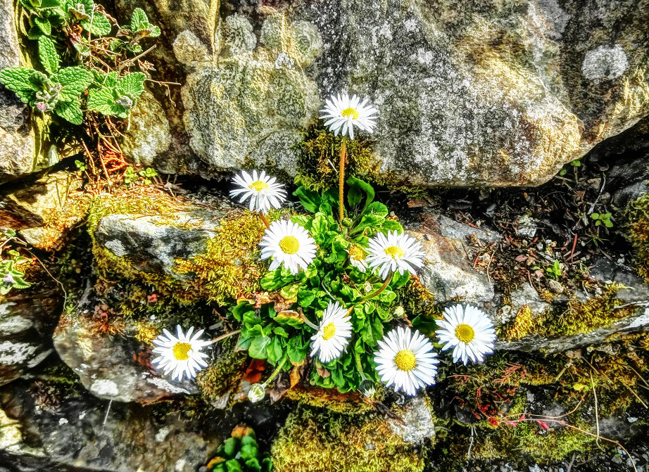 おまけに、その近くの岩場で、わざわざ窮屈な場所を選び、貼りつくかのように花開いている、健気(けなげ)な白い花からも、元気をいただきましたよ!! o(^-^)o