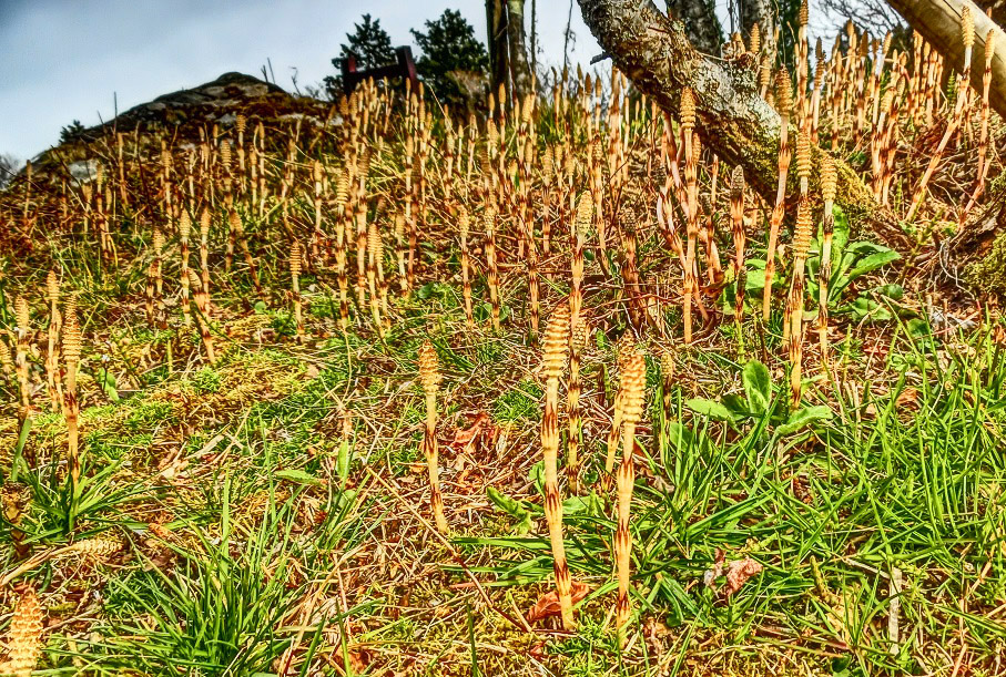 思いがけず、数百本にのぼる、「つくし」の大群落を発見!! \(◎o◎)/