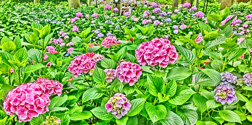 なにしろ、「1万株」(数えるのが大変だったでしょうね)もの紫陽花(あじさい)が、びっしりと咲き誇っているわけですから、それはもう、この世の極楽浄土・・・