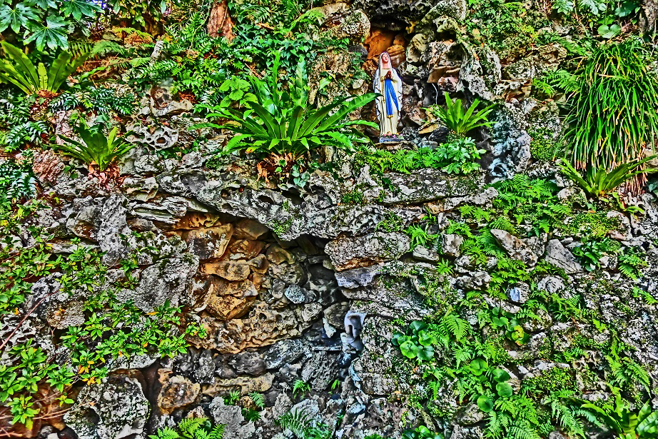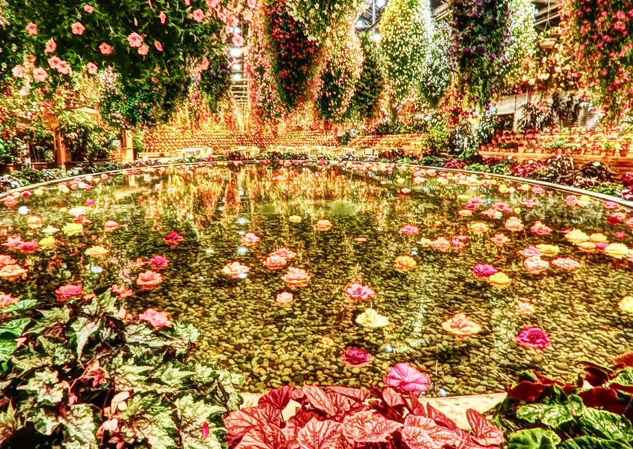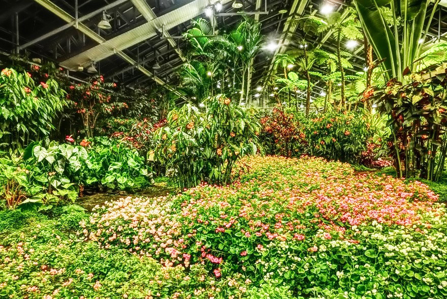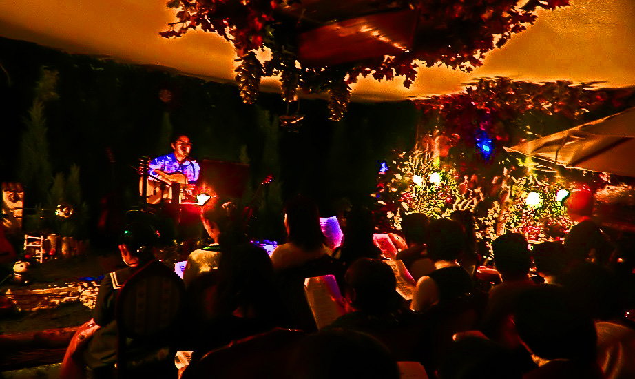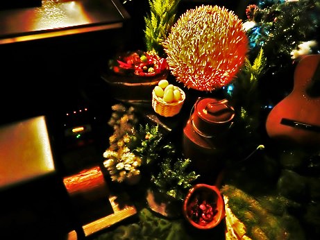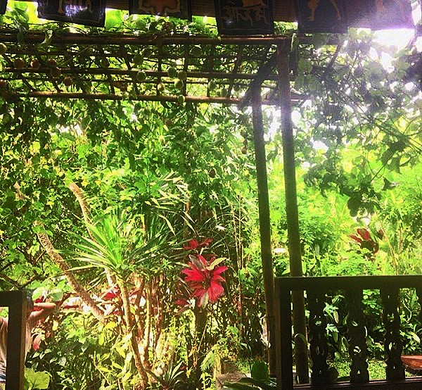 いかにも南国風の植物たちが生い茂っていて、香りや湿気や暖気だけでなく、虫の羽音までもが(笑)、伝わってきそうですよね・・・この場所は、どこかのレストランでしょうか?