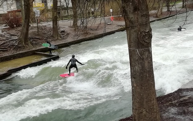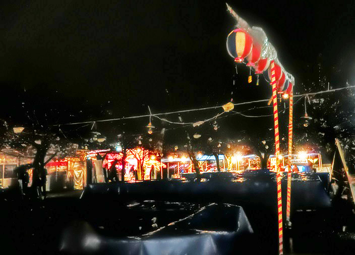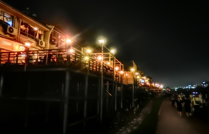 いつもは、恋人たちが等間隔で座って談笑している河岸も、この通り・・・