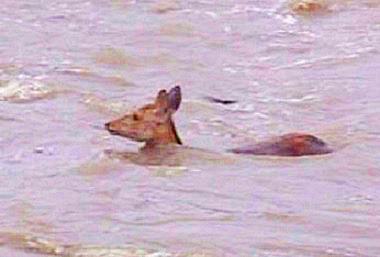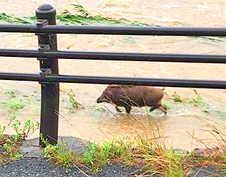 ネット上では、山から逃げ出して(流されて?)きた、さまざまな生き物たちが、撮影されておりました。
