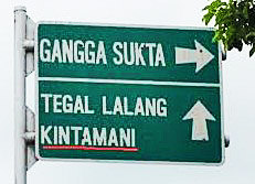 これが、その「キンタマーニ」地域の方向を示す、道路標識のようですが・・・なぜか、「KINTAMANI」の文字の下にだけ、赤線を引いて強調してありますね(※