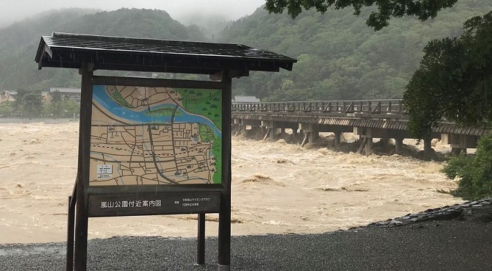 ネット上の報道によると、かの有名な、嵐山の「渡月橋」も、この有様!!