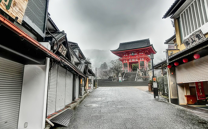 ウイルス問題で「緊急事態宣言」が出された京都の街に対して、