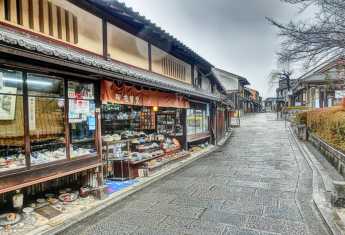 数多くの土産物屋が並ぶ「二年坂」ですが・・・