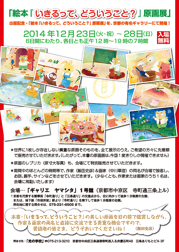 * 出版記念・「絵本『いきるって、どういうこと?』原画展」を、京都の有名ギャラリーにて開催!