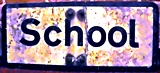 長年にわたり取り付けられていた「学校」の標識。(実物)
