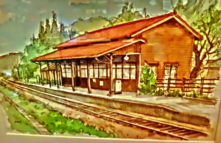 鉄道マニアに有名な、九州の駅を描いた水彩画。(実物)
