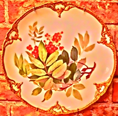 縁が金色に輝く、色彩豊かで芸術的な、高級飾り絵皿。(実物)