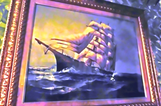 「嵐の海を勇敢に航海する帆船」を描いた力作。(実物)
