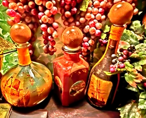 イタリア製の酒瓶(実物)および地球儀(実物)と、