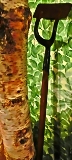 味のある素朴な脚立と、不思議な形の農機具。(実物)