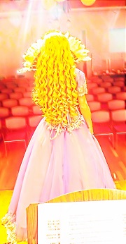 (注:写真は、リハーサル中に、「光の学校」スタッフが撮影したものです。本番では、マリーコさんの顔は、ずっと扇子で隠しており、全く見せませんでした)