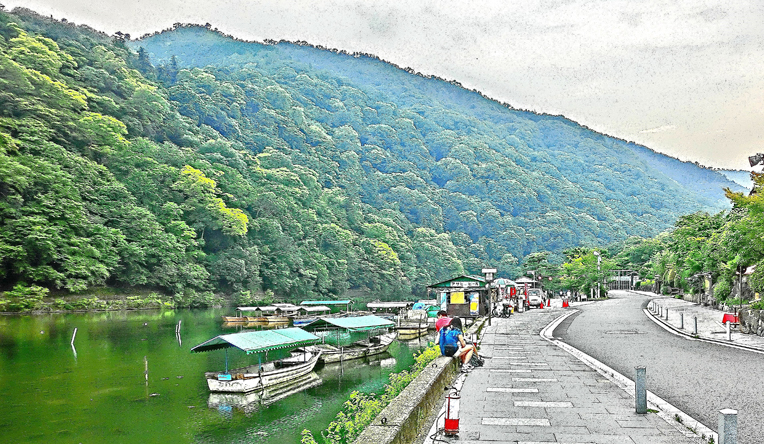 これが、広く世に知られる、京都・嵐山(あらしやま)の光景・・・