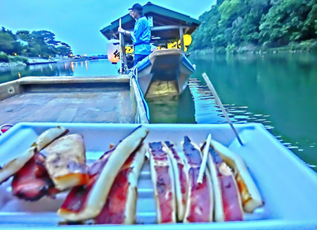 「いか焼き」で感涙にむせんでいると、突然、真横に鵜飼い船が!