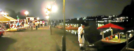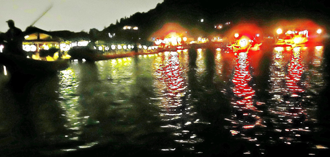 やがて、夜7時になると、船が川岸を離れて、川の上流へ・・・