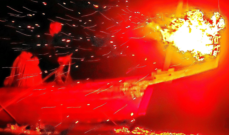 魚をおびき寄せる「かがり火」が、ますます燃え盛り、