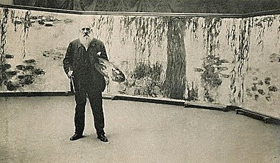印象派を代表する有名画家、「クロード・モネ」さんが、次の写真で制作中なのが、この部屋の壁をグルリと覆うほど巨大な、「睡蓮」の絵。