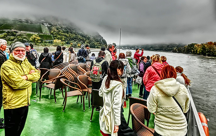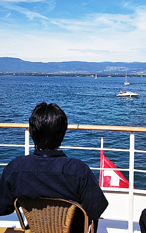 正解は、フランスとスイスの国境を湖面に含む、「レマン湖」を巡る観光遊覧船の、2階デッキ・・・いち早く並んで乗船し、最上階の最後方&最前列の中央という、好位置を確保したのです。