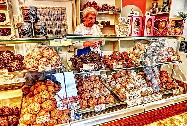 このオバサン、私がお店に入っていくと、注文も聞かないまま、勝手にお菓子を選んで、「ハイ、あんたはこれ!!」と、ドイツ語で指示命令・・・ドイツ語で反論できない私は、その迫力にたじろいで、言われるままに、料金を支払うしかありませんでした(笑)。