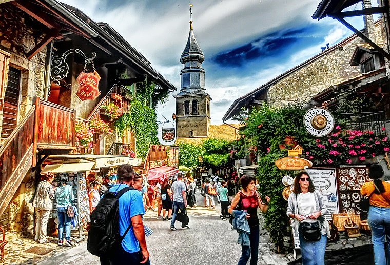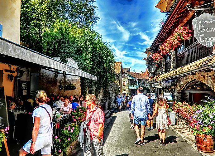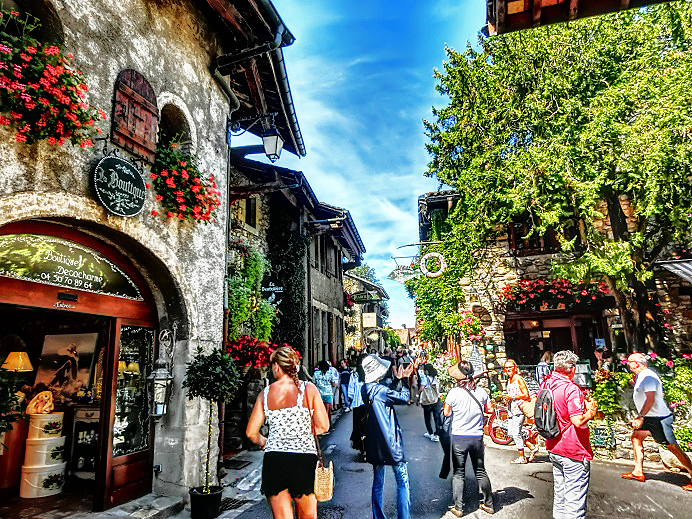 乗船したのは、「フランスで一番美しい村」のひとつに認定されており、「フランスの花の村コンクール」で優勝したという、可愛らしい「イヴォワール」。まだ、日本人(アジア人)には知られていないため、アジア系の人種が見当たらず、いかにもヨーロッパらしい光景が、広がっていましたよ。
