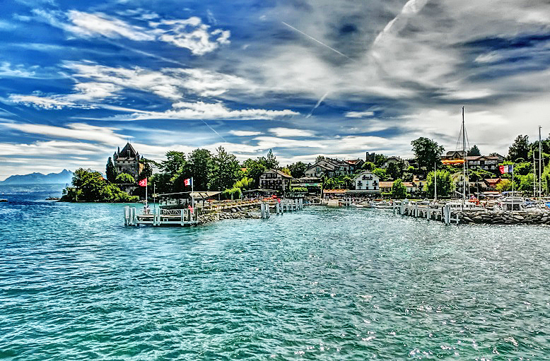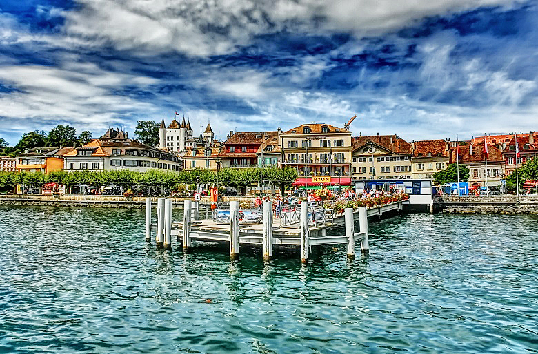 20分ほどの乗船後、レマン湖の対岸にある、スイス領の「ニヨン」の港に、着岸。