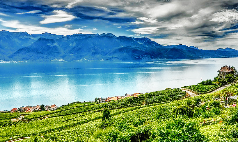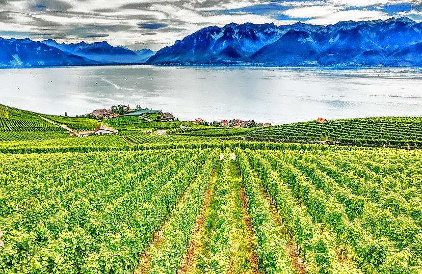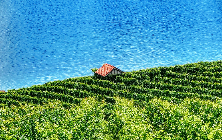 しばらくバスで移動すると、最高級ワインの生産地として有名な「ラヴォー地区」に広がる、世界遺産に指定されているブドウ畑に、到着しましたよ。