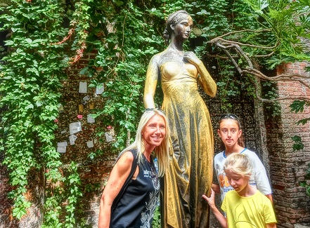 大人気のジュリエット像(イタリア語ではジュリエッタ)を、群衆をかき分けながら写真に収めることができたものの・・・過労でお腹を壊してしまった私は、何かを食べる元気が無く、持参した各種薬剤を取り混ぜて、昼食にしてしまいました(号泣)。